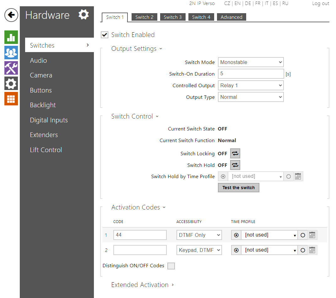 You can use DTMF to control the door release, go to Hardware-Switches and select Switch 1 and enter your dialling code: