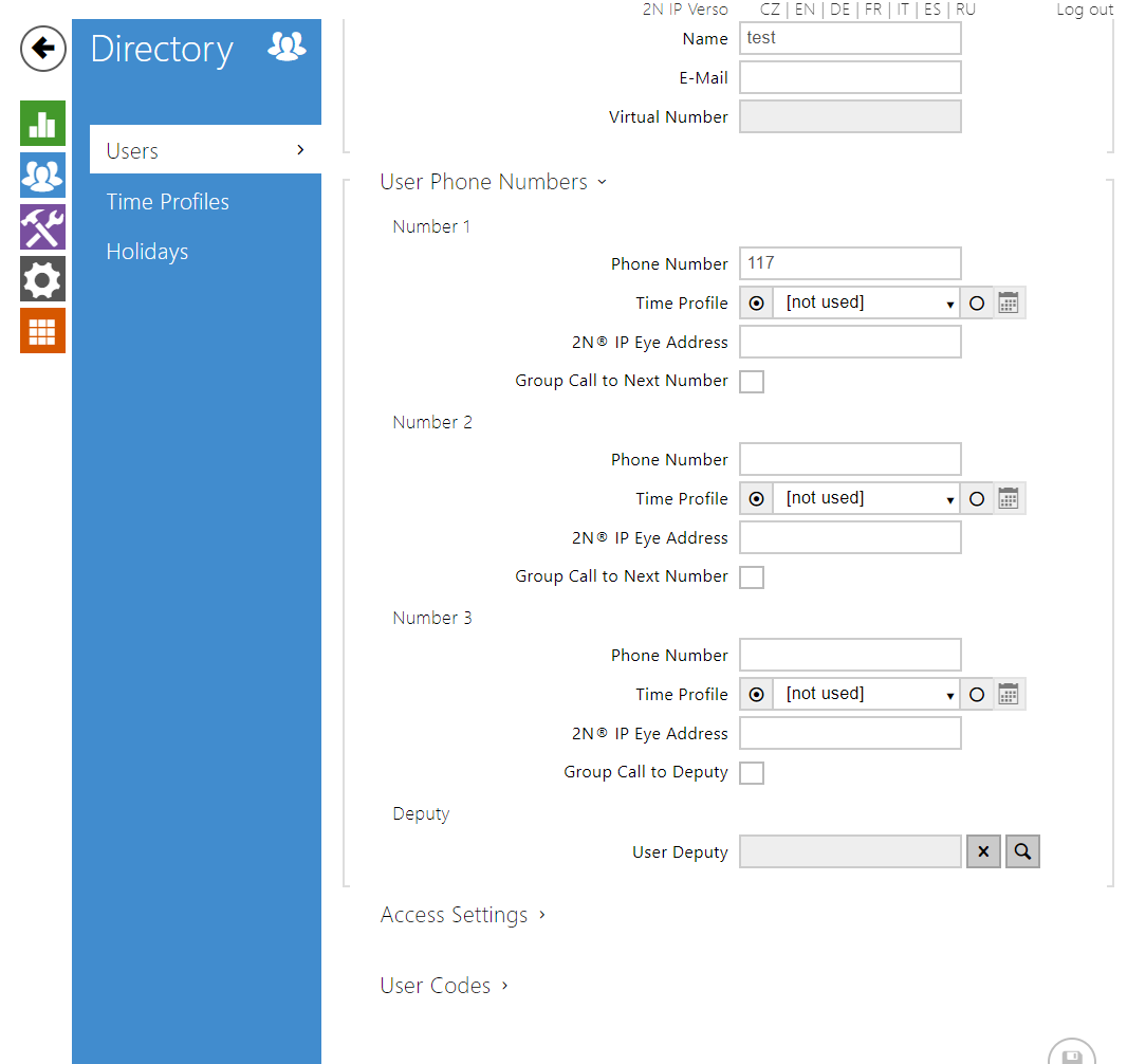 When pressing the door phone button you can configure where you want it to ring. Go to Directory – Users and enter the extension or group number in Name and Phone number as below: