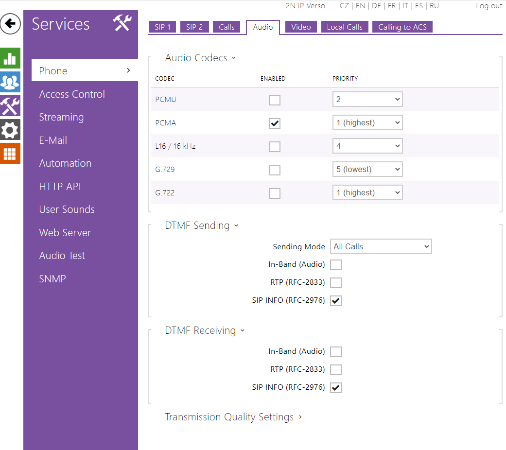 Go to Phone – Audio and make PCMA first choice and change your DTMF to SIP INFO as shown below