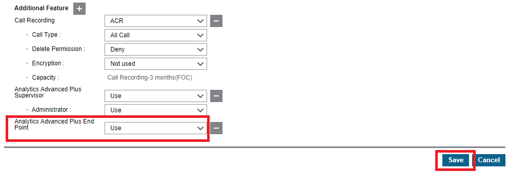 Under the “Feature” tab, click the minus button next to “Analytics Advanced Plus End Point”. Do not click “Save” yet.