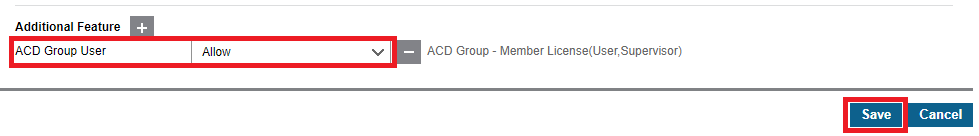 Under the “Feature” tab, click the minus button next to “ACD Group User”. Do not click “Save” yet.