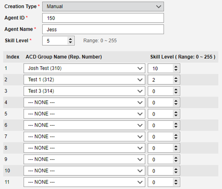 Under Agent ID you can assign their skill levels