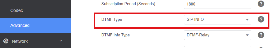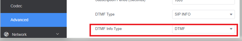 Set the DTMF Type to SIP INFO