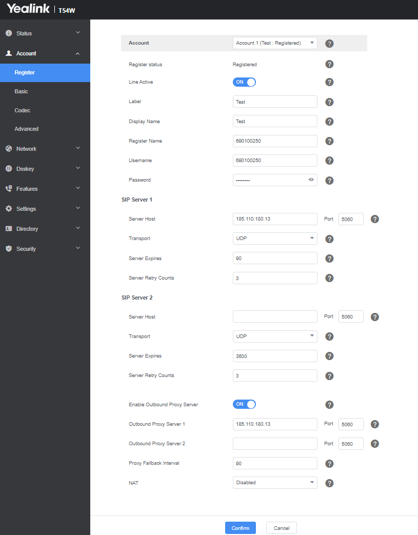 If all these details are correct your device will now register and say Registered in Register status, see below example