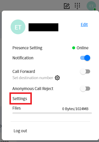 - Select your iPECS One user icon in the top right of the screen, and click Settings.